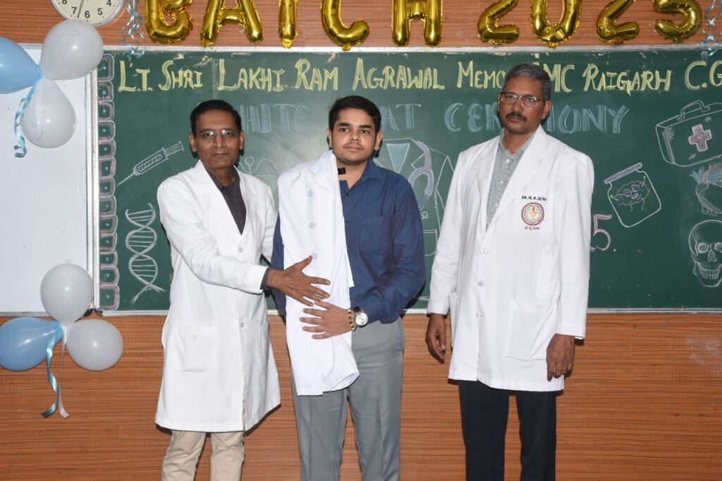 स्व.श्री लखीराम अग्रवाल स्मृति शासकीय चिकित्सा महाविद्यालय रायगढ़ में बुधवार को व्हाइट कोट सेरेमनी (White Coat Ceremony) का आयोजन बड़े ही उत्साह और गरिमा के साथ किया गया। यह समारोह नवप्रवेशित प्रथम वर्ष के एमबीबीएस बैच- 2025 के विद्यार्थियों के लिए आयोजित किया गया, जिसमें एम. बी. बी. एस प्रथम वर्ष के नवप्रवेशित 100 छात्र – छात्राओं को उन्हें सफेद कोट पहनाकर चिकित्सा पेशे में प्रवेश का प्रतीकात्मक संस्कार कराया गया।