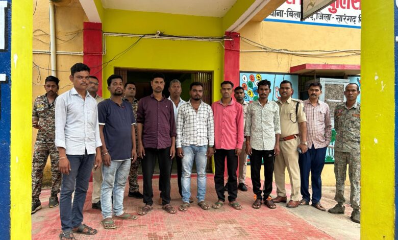 सारंगढ़।पुलिस अधीक्षक अंजनेय वार्ष्णेय के निर्देशन पर एवं अतिरिक्त पुलिस अधीक्षक निमिषा पांडे अनु.अधि. पुलिस विजय ठाकुर के मार्गदर्शन थाना प्रभारी उप निरी शिवकुमार धारी के नेतृत्व में ट्रैक्टर ड्राइवर को खंभे से बांधकर मारपीट करने वाले 07 आरोपी गिरफ्तार,सातों आरोपी को भेजा गया न्यायिक रिमांड पर।