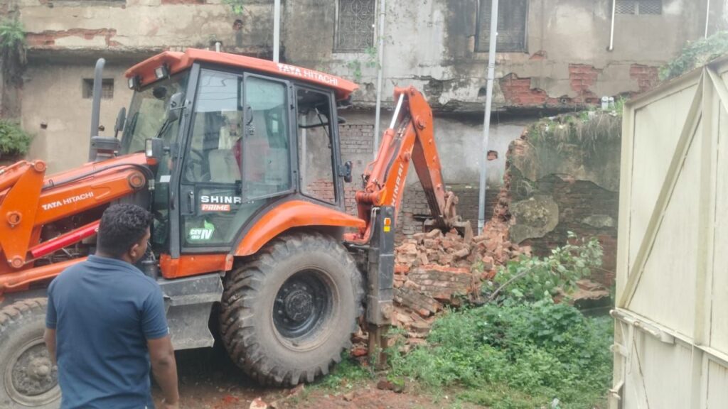 नाले की सफाई के लिए तोड़ी गई रामनिवास टॉकीज के सामने की दीवारें