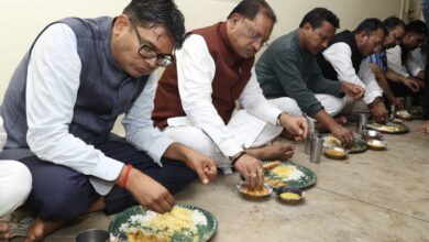 मुख्यमंत्री विष्णु देव साय ने पंगत में बैठकर भंडारा प्रसाद ग्रहण किया
